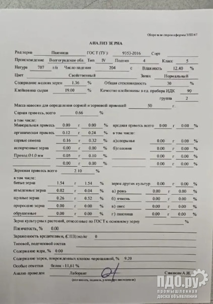 Декларация на зерно с аккредитованной лабораторией